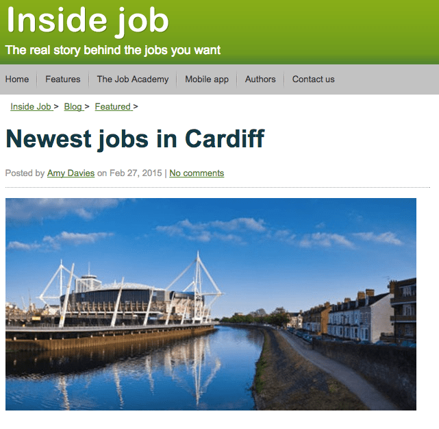 I was asked to put together a piece on new and exciting jobs in Cardiff – the kind of jobs that you wouldn’t have found 10 years ago for a regular client of mine, Total Jobs. The piece involved analysing data and discussing with local recruitment agencies to find out what was new on the Welsh job sphere. Click the picture below to read the piece.